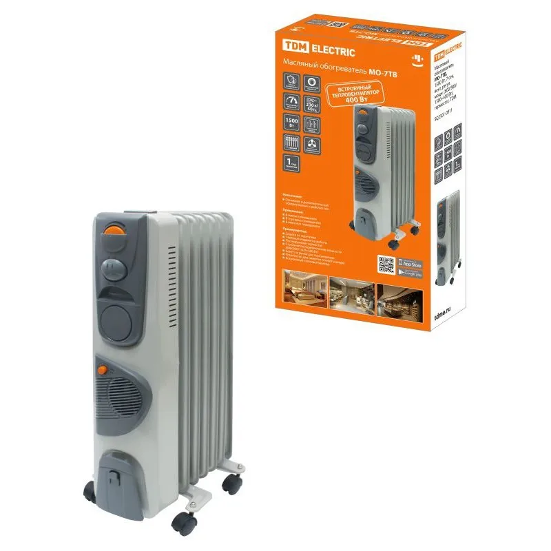 Масляные обогреватели со встроенным тепловентилятором МО-9ТВ, 2000 Вт, 9 сек, вент, регул. мощн. (800/1200/2000+400 Вт), термостат, TDM