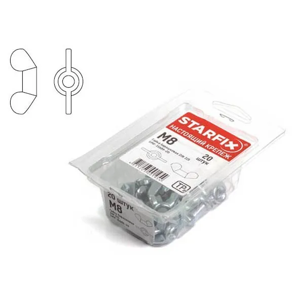 Гайка М4 барашковая, цинк, DIN 315 (10 шт в зип-локе) STARFIX
