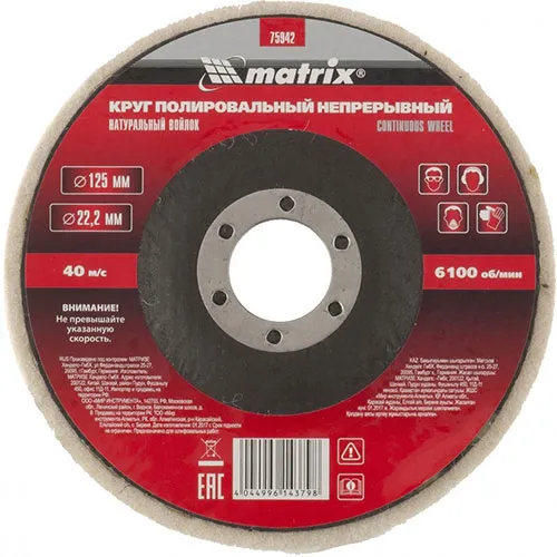 Круг полировальный непрерывный из натурального войлока 125 х 22,2 мм// Matrix
