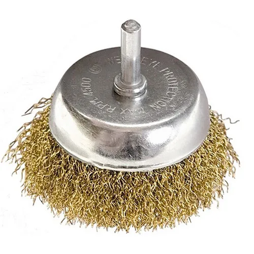 Щетка для дрели, 75 мм, "чашка" со шпилькой, латунированная витая проволока// Matrix
