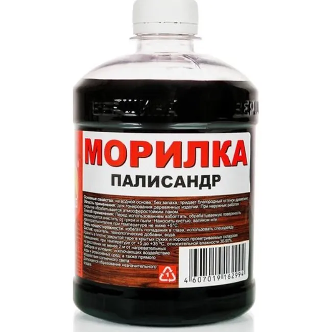 Морилка на водной основе, без запаха, применятся для тонирования и придания оттенков благородных пород древесины деревянным изделиям, использующимся во внутренних помещениях. Повторяет текстуру дерева, обладает хорошей светостойкостью. Морилка наносится на обрабатываемую поверхность кистью или губкой , а также распылением. Окончательный цвет поверхности зависит от количества нанесенных слоев, твердости и породы дерева. После высыхания рекомендуется на окрашенную поверхность наносить бесцветный защитный лак. Перед использованием взболтать, обрабатываемую поверхность рекомендуется очистить от грязи и пыли. Наносить кистью, валиком или краскораспылителем при температуре не ниже +5 градусов Цельсия. Расход - 80-120 гр. на 1 кв.м. при однослойном покрытии. Время высыхания каждого слоя при температуре +20 градусов не менее 12 часов. Толщина минимального слоя не нормируется. Зависит от качества обработки древесины, породы дерева, количества слоев нанесения.