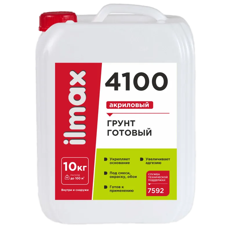 ilmax 4100 – готовый к применению грунт на основе дисперсии акрилового сополимера проникает в основание, обеспыливая и упрочняя его. После обработки поверхности грунтом снижается водопоглощение, тем самым предотвращается быстрое высыхание наносимых в дальнейшем материалов и обеспечивается их равномерный набор прочности. Обработка грунтом увеличивает адгезию между основанием и наносимыми материалами. После высыхания – прозрачный.