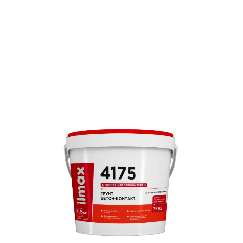 ilmax 4175 бетон-контакт – грунт розового цвета на основе дисперсии акрилового сополимера с калиброванным заполнителем из мрамора, обеспечивающий высокоадгезионный контактный слой. Индикатор цвета позволяет равномерно и без пробелов нанести грунт, тем самым обеспечив высокое качество подготовки основания. Бетон-контакт образует прочную шероховатую полимерную плёнку для гарантированного сцепления последующих слоёв с основанием.