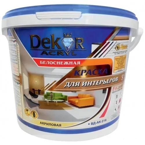 Краска ВД-АК 216 ГОСТ "DECOR" для интерьеров моющаяся белоснежная 14 кг.