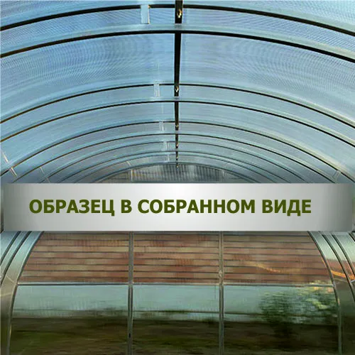 Теплица состоит из цельных двойных дуг расположенных друг от друга на расстоянии 67 см, цельносварных торцов и продольных соединительных труб, что значительно упрощает сборку и установку. Болтовое соединение.