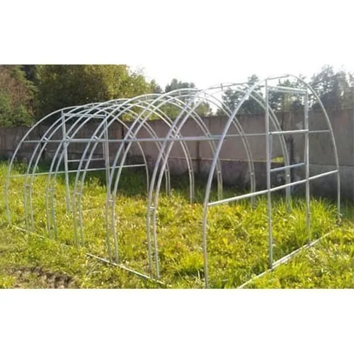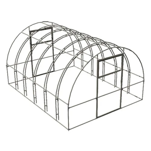 Теплица состоит из цельных двойных дуг расположенных друг от друга на расстоянии 67 см, цельносварных торцов и продольных соединительных труб, что значительно упрощает сборку и установку. Болтовое соединение.