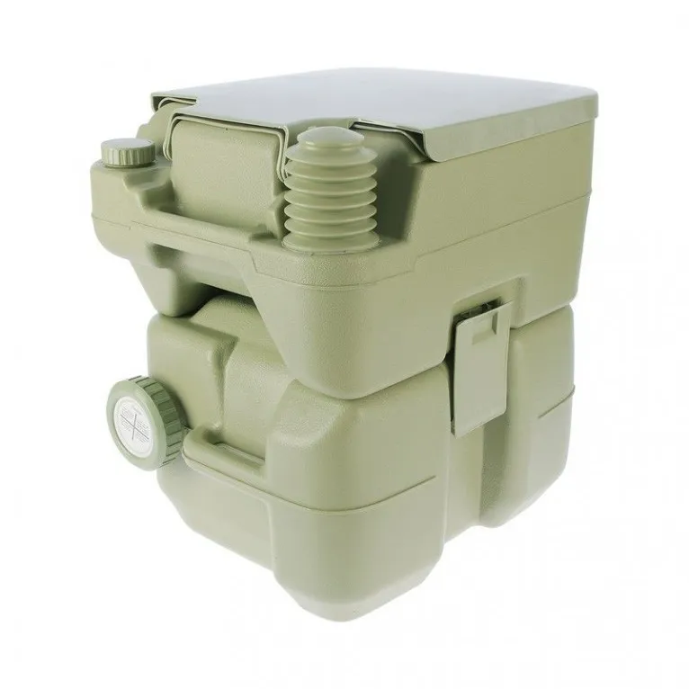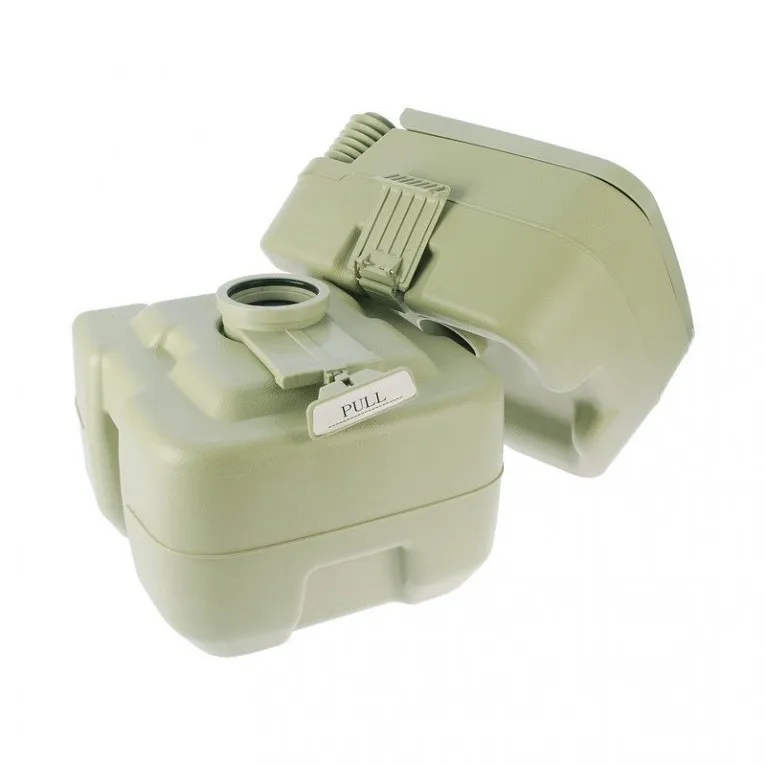 Портативный жидкостный биотуалет состоит из двух секций: нижний бак-накопитель емкостью 20 литров и верхний бак емкость 15 литров. В верхний бак заливается вода и специальная жидкость для смыва нечистот. Каждое посещение туалета требует использование помпы для слива нечистот. В верхней части биотуалета расположено удобное сиденье, закрываемое крышкой.