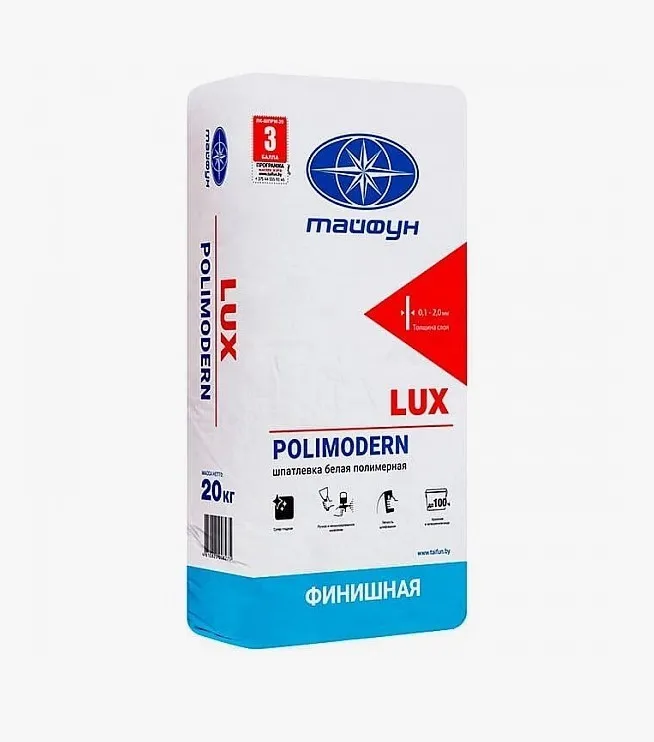.Шпатлевка финишная полимерная Lux POLIMODERN (Люкс Полимодерн) суперпластичная белая 15 кг предназначена для высококачественной отделки стен и потолков с нормальным режимом эксплуатации.