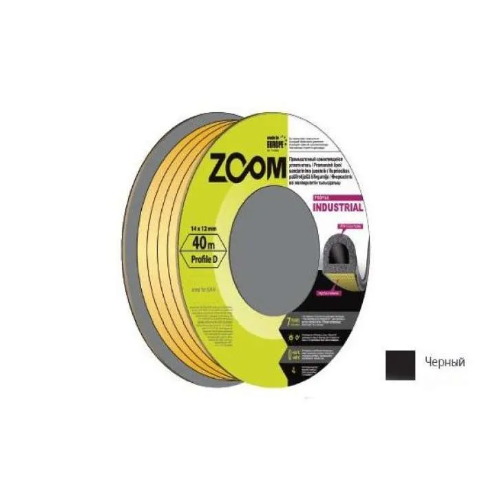 Уплотнитель гаражный "D" черный 14х12мм 40м ZOOM INDUSTRIAL сдвоенный профиль (2х20м)