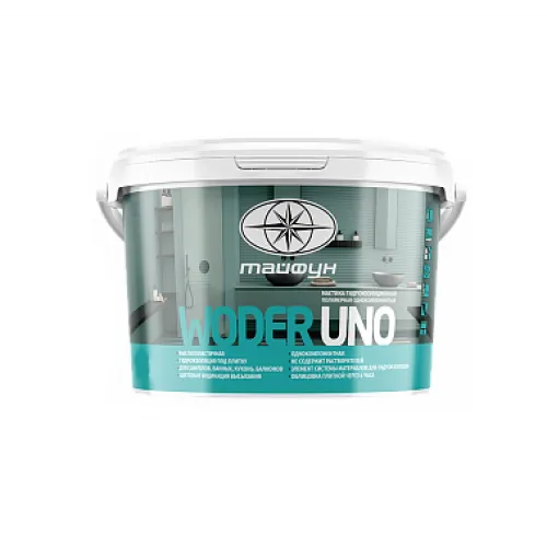 Мастика гидроизоляционная полимерная однокомпонентная «Тайфун Мастер «WODER UNO» предназначена для устройства гидроизоляции легкого и среднего типа перед облицовкой плиткой и нанесением отделочных слоев, в том числе полов со встроенной системой отопления, стен, потолков внутренних помещений с влажным режимом эксплуатации (санузлы, ванные, душевые, в том числе душевые поддоны, прачечные, бани, кухни), а также для противовлажностной гидроизоляции балконов, входных групп подверженных периодическому увлажнению. Мастика создает водонепроницаемую, высокоэластичную гидроизоляционную защиту оснований, в том числе подверженных термическим и механическим деформациям (конструкции из ГКЛ, ГВЛ, OSB и т.д.). Гидроизоляционное покрытие, выполненное с применением мастики «Тайфун Мастер» WODER UNO» служит основанием для укладки всех видов облицовочной плитки. В комплексе с высокоэластичной гидроизоляционной лентой и уголками «Тайфун» применяется для гидроизоляции примыканий стен и пола, деформационных швов, мест ввода водопроводной и канализационной систем, электрических кабелей и установочных мест элементов освещения.