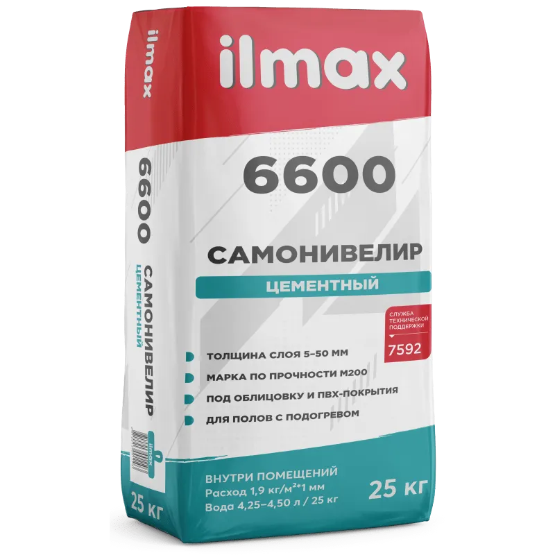 ilmax 6600 – самонивелирующаяся стяжка (самонивелир) на цементном вяжущем с тщательно подобранным фракционным составом заполнителя, что позволяет применять состав в широком диапазоне толщин. Пластификатор и модифицирующие добавки обеспечивают растекаемость растворной смеси и оптимальные технические характеристики. Трещиностойкий, практически безусадочный материал позволяет получить ровную поверхность.